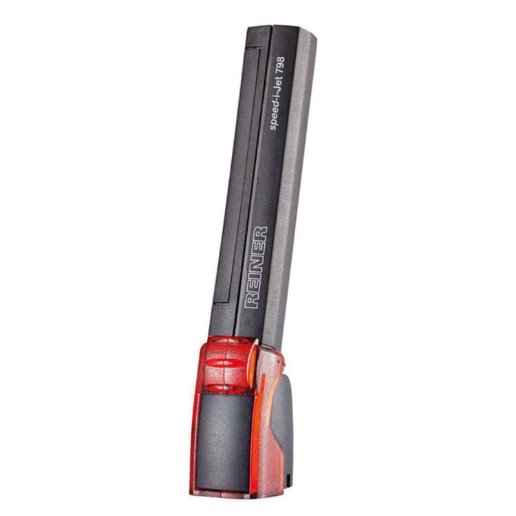 جت پرینتر دستی تک خط(رینر (REINER)) مدل 798 ؛ با قابلیت چاپ لاتین، طول پیغام 40 کاراکتر و ارتفاع چاپ 3 میلیمتری، کیفیت چاپ 300DPI ، وزن 125گرم، ساخت کشور آلمان. امکان چاپ آرم و بارکد را ندارد.