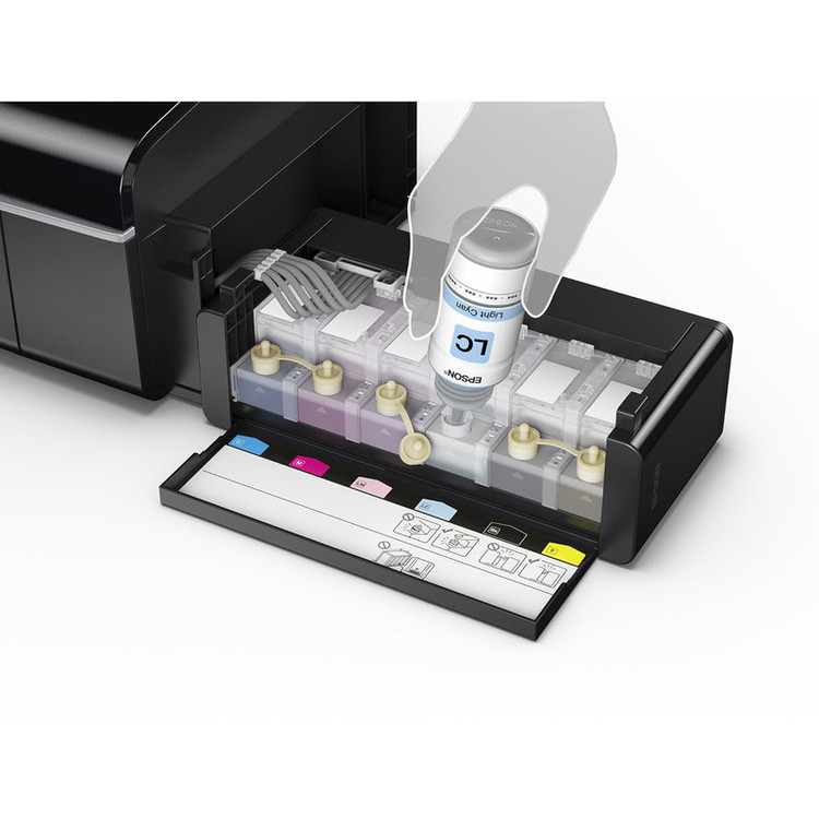 پرینترهای جوهرافشان یکی از دستگاههای لازم در ادارات و کاربردهای خانگی هستند و استفادههای گوناگونی از آنها میشود. پرینتر «L805» از شرکت «اپسون» (Epson) در ابعاد 187×289×547 میلیمتر و وزن 6 کیلوگرم عرضه میشود. چاپ به صورت جوهرافشان و رنگی در وضوح 5706×1440 dpi با استفاده از 90 نازل مشکی و 90 نازل رنگی انجام میشود. میتوانید 5 برگ در دقیقه را به صورت رنگی یا سیاه و سفید چاپ کنید. برای چاپ عکس در اندازهی 10×15، حدود 12 ثانیه زمان لازم است. این پرینتر از کاغذهایی با اندازههای A4، A5، A6، B5، C6 (Envelope)، DL (Envelope)، No 10 (Envelope)، 10×15، 13×18 و Legal پشتیبانی میکند؛ همچنین قابلیت چاپ روی «CD» را دارد. چاپ دورو به صورت دستی انجام میشود. ظرفیت سینی کاغذ 120 برگ کاغذ استاندارد و 20 برگ Photo Paper است. ظرفیت سینی خروجی 50 برگ است. چاپگر از طریق درگاه USB به یارانه وصل شده و با برق شهری تغذیه میشود. برق مصرفی دستگاه در حالت چاپ برابر با 13 وات و در حالت Sleep Mode برابر با 1.2 وات است. این چاپگر به مخزن جوهر مجهز است و میتوانید با استفاده از بستهی جوهر T6736، تانکر جوهر را پر کنید.