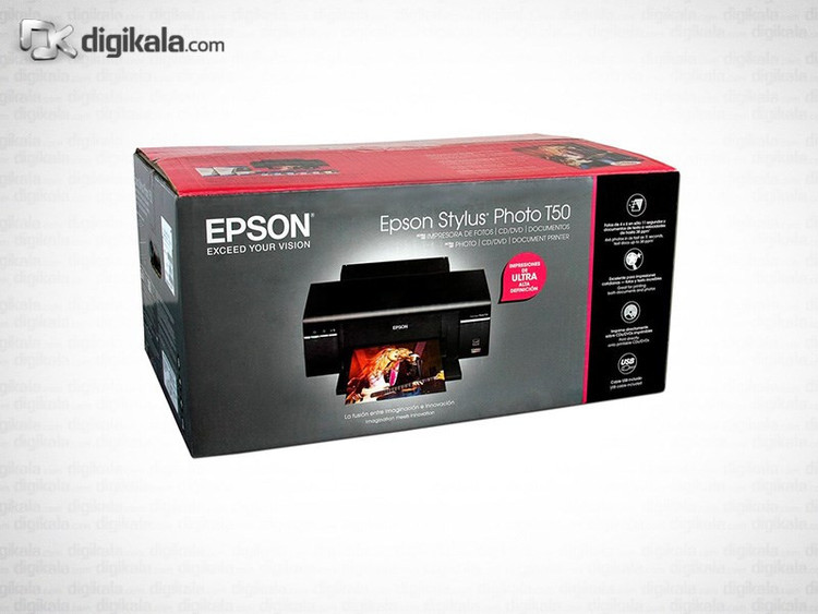 پرینتر «Stylus Photo T50» محصولی از شرکت اپسون (Epson) است. این پرینتر از نوع جوهر افشان است و به همین دلیل عملکرد خوبی در چاپ تصاویر گرافیکی دارد. کیفیت چاپ این دستگاه برابر با 5760x1440 dpi است و رنگ های چاپ شده از روشنایی و عمق خوبی برخوردار هستند. سرعت چاپ در این پرینتر نیز در دستور کار قرار دارد و می تواند در هر دقیقه 38 صفحه به چاپ برساند. اگر چاپ بر روی کاور CD یا DVD را نیز در لیست کارهای خود دارید، پرینتر Stylus Photo T50 از این ویژگی بهره مند است. اتصال این دستگاه تنها از طریق درگاه USB صورت می گیرد.
