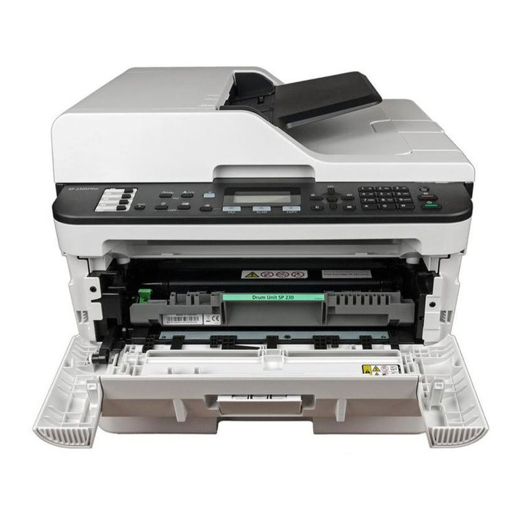 SP 230 SFNw ریکو یک دستگاه لیزری چهار کاره سیاه سفید با سرعت چاپ 30 برگ در دقیقه میباشد. دستگاه «SP 213SFNw» ساخت شرکت «ریکو» یکی از پرینترهای لیزری و چندکارهای است که با قیمت و کارایی مناسب در اختیار مصرفکنندگان قرار گرفته است. این دستگاه از نوع 4 کاره بوده و قابلیتهای متنوعی را در چنته دارد. با خرید این کالا از وجود یک گوشی تلفن و همچنین یکعدد کارتریج اضافه بهرمند خواهید شد. توان کار ماهانهی 20.000 صفحه در ماه نشان از بار کاری متوسط این محصول دارد و آن را برای استفاده برای امور شخصی و یا در محیطهای اداری کوچک مناسب میسازد. از ویژگیهای قابلتوجه این پرینتر میتوان قابلیت WiFi و درگاه شبکه را نام برد. هر دو قابلیت فوق بسیار کاربردی و مطلوب بوده و به اشتراکگذاری پرینتر بین چندین رایانه را تسهیل میکند.