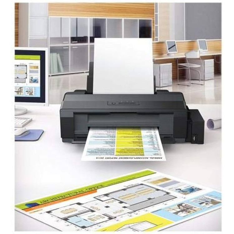پرینترهای جوهرافشان یکی ازموارد لازم در ادارات و کاربردهای خانگی هستند و استفادههای گوناگونی از آنها میشود. پرینتر «L1300» از شرکت «اپسون» (Epson) با تانکر 4 رنگ در ابعاد 705 × 798 × 215 میلیمتر و وزن 12.2 کیلوگرم عرضه میشود. چاپ به صورت جوهرافشان و رنگی در وضوح 5706 × 5760 dpi با استفاده از 360 نازل مشکی و 59 نازل رنگی انجام میشود. سرعت چاپ 15 برگ در دقیقه به صورت سیاه و سفید و 5.5 برگ در دقیقه به صورت رنگی است. همچنین میتوانید 30 برگ در دقیقه سیاه و سفید و 17 برگ در دقیقه به صورت رنگی بر روی کاغذ معمولی چاپ کنید. کاغذهایی با اندازههای A3+، A3، A4، A5، A6، B4، B5، C6 (Envelope)، DL (Envelope)، No 10 (Envelope)، 10 × 15، 13 × 18، 13 × 20، Legal و همچنین اندازهی تعیین شدهی کاربر، پشتیبانی میشوند. چاپ دورو به صورت دستی انجام میشود. ظرفیت سینی کاغذ 100 برگ کاغذ استاندارد و 20 برگ Photo Paper است. ظرفیت سینی خروجی 40 برگ است. چاپگر از طریق درگاه USB به یارانه وصل شده با برق شهری تغذیه میشود. برق مصرفی دستگاه در حالت چاپ برابر با 20 وات و در حالت Sleep Mode برابر با 7 وات است. این چاپگر به مخزن جوهر مجهز بوده و میتوانید با استفاده از جوهرهای C13T66414A، C13T66424A، C13T66434A، C13T66444A تانکر جوهر را پر کنید.