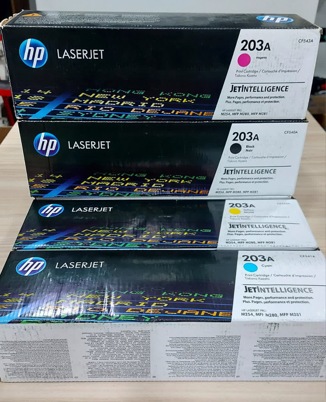 - کارتریج اچ پی HP 203A با کیفیت Grade A (درجه یک) . این ست کارتریج شامل چهار رنگ تونر کارتریج مشکی، آبی، قرمز و زرد است که با دستگاه های پرینتر HP M254nw, M254dw, M280nw, M281fdw, M281fdn سازگار می باشد.